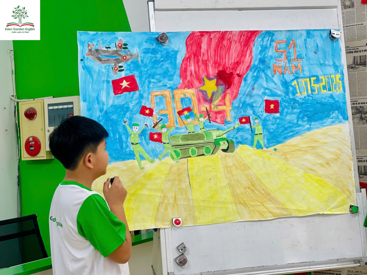 Những hoạt động như “Vẽ tranh & Thuyết trình chủ đề 30/4” chính là minh chứng rõ nét cho môi trường học tập năng động, sáng tạo tại Eden Garden English.